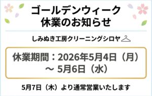 お気軽にお問い合わせください。072-831-4745電話受付時間 9:00-20:00 [ 水曜日,第2木曜日定休 ] お問い合わせ ご自宅に集配いたします。【WEB予約OK!】お家までクリーニングを集配してくれる。 そんなクリーニング店をお探しではないですか? シロヤでは「定期集配」「ある時だけスポット集配」など お客様の生活スタイルに合わせて集配を行なっております。 集配の訪問日の「WEB予約」を24時間いつでも出来るので、 とても便利です。詳しくはこちらFacebookXBlueskyHatenaCopy