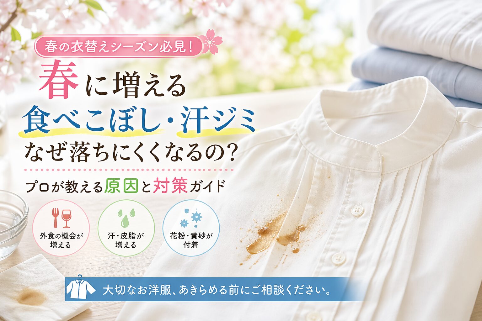 今回は、春に多い食べこぼしや汗ジミが「なぜ落ちにくくなるのか」、そして「どうすれば大切な衣類を守れるのか」を、クリーニングのプロの目線からやさしく解説します。