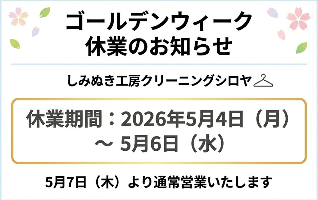 いつも、しみぬき工房クリーニングシロヤをご利用いただき、誠にありがとうございます。