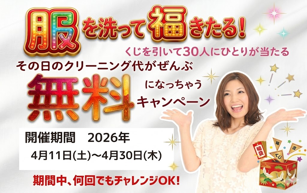 三角くじを引いて、「当たり」が出ればその日のクリーニング代がなんと【全部無料】!